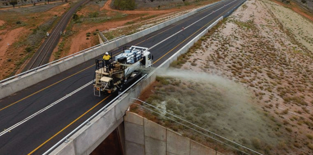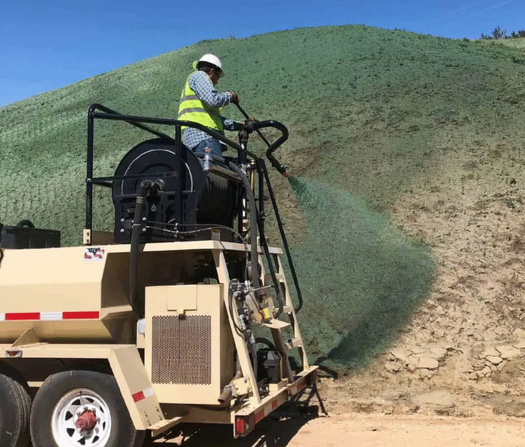 Application of specialized mix to prevent soil erosion. Ideal for highways, embankments, construction sites, and mining areas